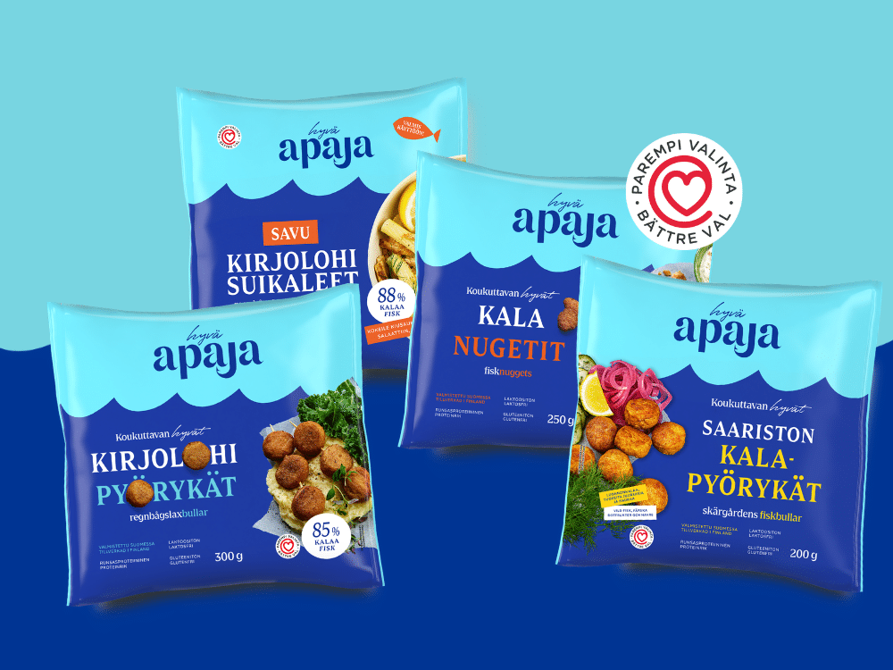 Hyvä Apajalle se merkitsee sitoutumista makuun, laatuun ja vastuullisiin valintoihin ilman kompromisseja. Sydänmerkityt kalatuotteet tekevät kalan lisäämisestä arkeen helppoa ja herkullista.